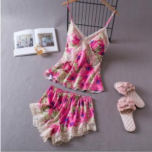 新着 セクシー キャミソール パジャマ 女性 アイスシルク 薄手 プリント キャミソールショーツ2点セット 寝巻き ルームウェア 韓国風 M L XL 花柄パジャマ 夏物