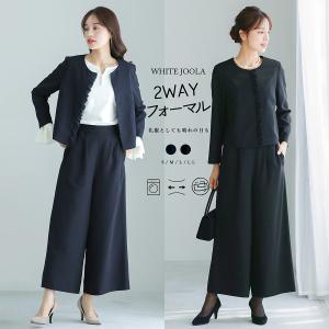 慶事・弔事【洗濯機可!接触冷感!ストレッチ!防シワ!】フリルノーカラージャケット&ワイドパンツセット