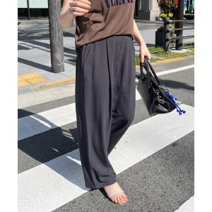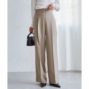 パンツ 「4サイズ展開」きれいめ素材ハイウエストジップワイドパンツ レディース