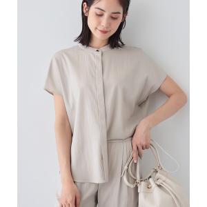 ブラウス シャツ 「洗える/SETUP可能/UVケア/接触冷感/日本製」バンドカラー半袖ブラウス レディース