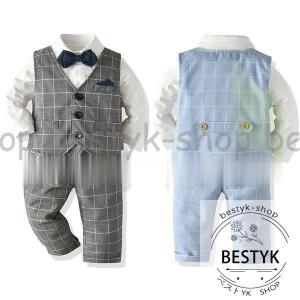 フォーマルスーツ 子供服 ベビー服 3点セットスーツ 新入荷 男の子 結婚式 発表会 紳士風 セットアップ ズボン 春秋 お正月 初節句 リボン