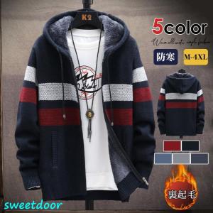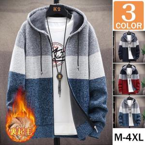 パーカー メンズ ニットカーディガン 裏起毛 ジャケット フード付き 厚手 スウェットパーカー ニットセーター 長袖 防寒 秋冬 トップス