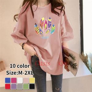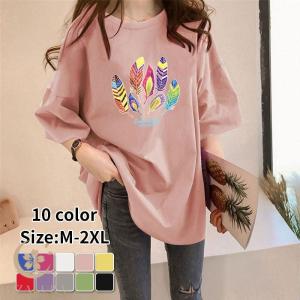 Tシャツ 丸首 レディース 夏 半袖ティーシャツ ゆるトップス 大きいサイズ プルオーバー カジュアル 着痩せ 上着 親友ギフト 団体服