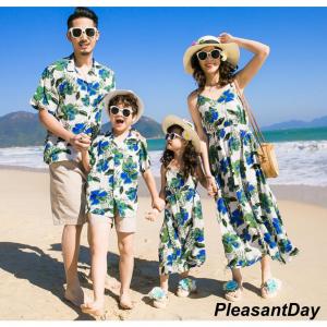 アロハシャツ 親子コーデ メンズ レディース キッズ ペアルック お揃い 親子ペア アロハ ワンピース リゾート 親子リンクコーデ 家族服 夏 海