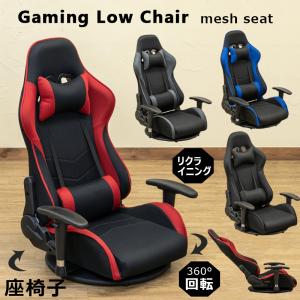 座椅子 ゲーミングチェア型 回転式 ハイバック リクライニングチェア おしゃれ 座いす デスクチェア型 ロータイプ メッシュ使いシート