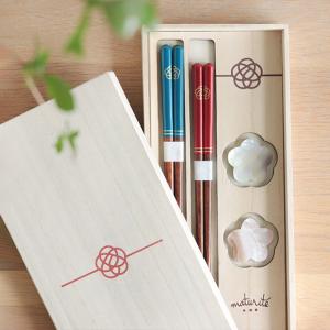 Maturite 梅結び 夫婦箸&箸置きセット 0059UMB001(結婚祝い 食洗機対応 おしゃれ プレゼント ギフトセット 一双 夫婦 ペア はし 贈り物 両親 木婚式 結ギフト)