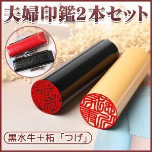 ご夫婦印鑑2本セット 印鑑 はんこ 実印 銀行印 印鑑 認印 実印 女性 [黒水牛(極上)+柘(つげ)]+鶴亀印鑑ケース2個付き!サイズが選べる!送料無料