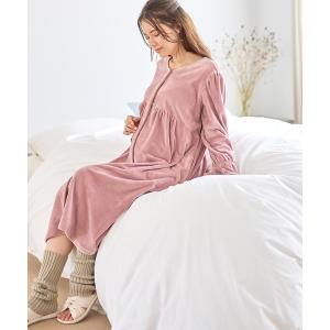 マタニティ ストレッチベロア無地&花柄ネグリジェ/ワンピースパジャマ/ルームウェア(マタニティ/授乳服)授乳楽々 妊婦服 産前・産後対応