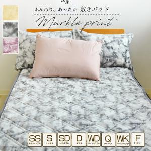 敷きパッド あったか マーブル フランネル 大理石調 シングル セミダブル ワイドキング 丸洗いok 北欧 マイクロファイバー ベッドパッド 敷き布団 マットレス に