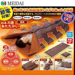 メイダイ シュラフ 寝袋 封筒型 着る毛布 掛け布団 ひざ掛け アウトドア キャンプ用品 車中泊 防災 災害 節電 冬 保温 防寒 暖暖あったか4WAYシュラフ more hot