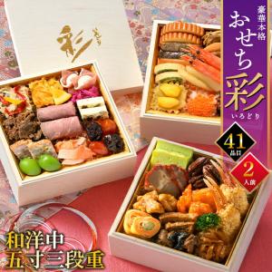 おせち 2人前 2026 おせち料理 手作りおせち 北のシェフ 彩(いろどり) / 2025 御節 お節 北海道 和洋中 豪華3段重5寸 全41品 三段 三段重 人気