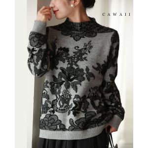 Sから3L対応 優美なレース柄ニットプルオーバートップス