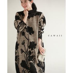 予約:12月25日〜1月10日前後の出荷予定 Sから2L対応 デコルテに広がるレース柄の黒花起毛ニットミニワンピース