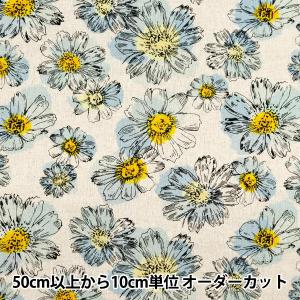 【数量5から】 生地 『日比谷花壇 花屋さんのお花柄 綿麻キャンバス Geometric cosmos柄 サックス HBY-10010-SX』