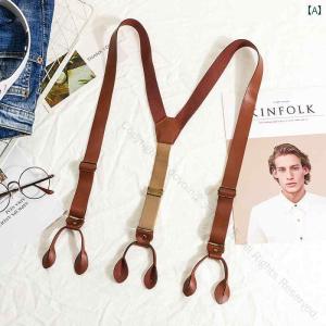 サスペンダー ベルト クリップ 英国風 PUレザー ストラップ Y字型 ボタンタイプ 6ボタン メンズ レディース ショルダーストラップ 大人用 パ