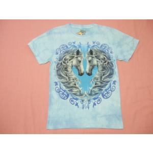 横浜最新 素敵な2頭の白馬♪魅惑の夜光仕上げTシャツ ブルー絞り柄 サイズ M 送料無料hei89