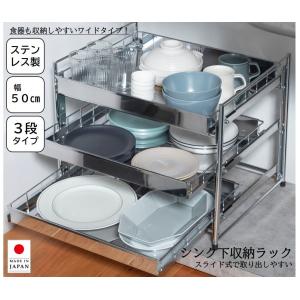 オビタス ステンレス製引出しラック3段 幅50(シルバー) 燕三条製 YMG-026-OV 返品種別A