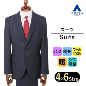 【洋服の青山】60周年特別企画 ウール100% スーツ メンズ スリム 秋冬 ネイビー 紺 大きいサイズ 2ボタン シングル 背抜き ノータック 保温性 吸放湿性 防シワ
