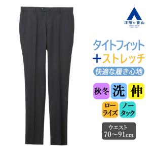 【洋服の青山】スラックス メンズ 洗える 秋冬 ブラック 黒 スタイリッシュ スリム ノータック パンツ 紳士服 ビジネス オフィス 仕事 ウォッシャブル