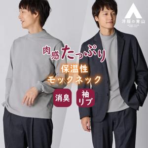 【洋服の青山】モックネック Tシャツ 長袖 メンズ 春夏秋冬 グレー 灰色 無地 大きいサイズ 保温 暖かい 洗える ストレッチ 動きやすい 消臭 光沢 防寒 冷房対策