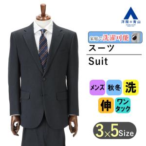 【洋服の青山】スーツ メンズ スタンダード春夏用 ネイビー系 ウォッシャブル 洗える 洗濯 ストライプ ストレッチ 折り目スッキリ 2ボタン 背抜き 切り台場