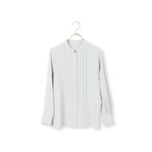 【洋服の青山】ブラウス 長袖 レディース オールシーズン ブルー 青 無地 バンドカラー ピンタック 透けにくい 洗える 動きやすい ウォッシャブル ストレッチ