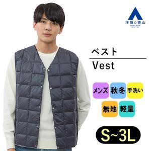 【洋服の青山】メンズ 中綿 軽量 軽い 無地 ウォッシャブル 洗える 秋冬用 ネイビー系 インナーダウンベスト【TAION】