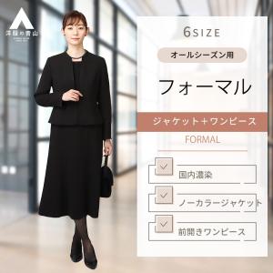 【洋服の青山】喪服 礼服 2点 セット ワンピース ノーカラージャケット 襟なし 米沢織 ブラック フォーマル セットアップ 重ね着風 ワンピース 通夜 告別式 葬式