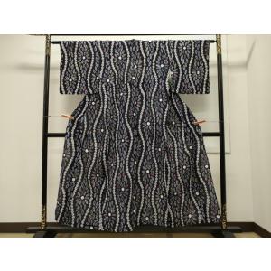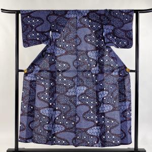 浴衣 身丈152cm 裄丈61cm S 絞り浴衣 流水 有職文様 紺色 綿 名品 中古