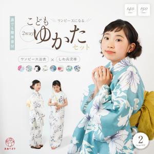 浴衣 子ども セット 子供浴衣セット ワンピース浴衣 2点セット ジュニア ガールズ 子供浴衣 キッズ しわ兵児帯 2way コーディネート済み 二部式 簡単着付け