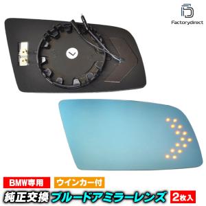 【互換品】lm-bm10A BMW 5シリーズ E60 セダン E61 ツーリング (2003-2009.09 H15-H21.09 ※M5不可) LEDウインカードアミラーレンズ ブルー ドアミラーガラス (