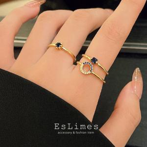指輪 レディース リング 3点セット ブルー石 カジュアル おしゃれ ゴールド 個性 18kgp 女性 クリスマス ポイント利用
