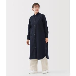 ワンピース 婦人 洗いざらし ブロード長袖シャツワンピース