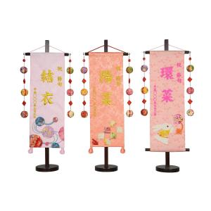 選べる4種 彩押絵図柄刺繍名旗台付セット 特中 夢流水/市松/福うさぎ 鞠三連 名前旗 刺繍入り 旗サイズ40cm ひな祭り 雛人形 女の子 刺〓