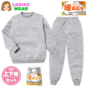 送料無料 婦人 レディース 裏起毛 長袖 スウェット スーツ パジャマ 上下組 あったか素材 保温 軽量 乾きやすい M L LL yg-3179a-gy