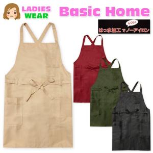 送料無料 レディース エプロン 前縛り エステルツイル 撥水加工 らくらくノーアイロン 無地 婦人 メール便対応