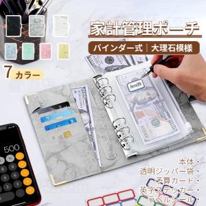 家計管理ポーチ バインダー 大理石模様 リフィル付き A6サイズ 家計簿ポーチ 袋分け家計簿 通帳ケース 母子手帳 パスポートケース 家計管理や通帳収納に便利