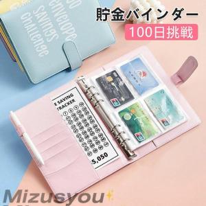 現金封筒付き 貯金バインダー 100日貯金挑戦 ファスナー封筒付き PUレザー マネーバインダー オーガナイザー 予算作成