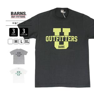 BARNS バーンズ メンズ 半袖 Tシャツ STANDARD TSURIAMI 吊り編み クルーネック プリントTシャツ BARNS Univ カレッジロゴ バインダーネック BR-25291