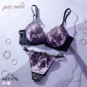 プチマリー Luxe Bloom ブラジャー Tバックショーツ セット ブラセット ABCDEF 脇高 谷間 盛りブラ petit marie BLACK 大きいサイズ