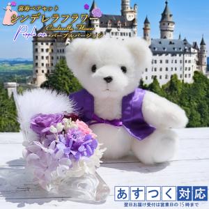喜寿のお祝い 花 紫のちゃんちゃんこを着た 喜寿ベアセット シンデレラフラワー パープルバージョン メッセージカード付き プリザーブドフラワー 靴 女性 ギフト