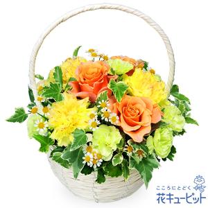 【お祝い】花キューピット 敬老の日 誕生日 記念日 結婚祝い 歓送迎 還暦 開店開業 卒業入学 生花 オレンジバラのナチュラルバスケット