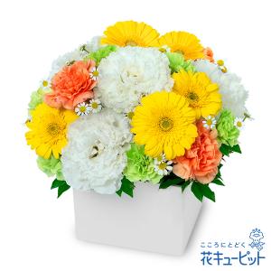 【退職祝い】花キューピット 花 ギフト お祝い プレゼントイエローガーベラのキューブアレンジメント