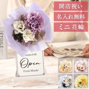 開店祝い 花 スタンド 名入れ プレゼント 名前入り ギフト ミニ花輪 くすみカラー 卓上 造花 おしゃれ お花 美容室 カフェ 開業開院 周年記念