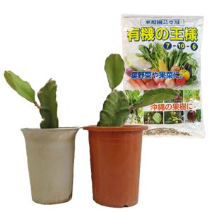 ドラゴンフルーツ苗6号鉢挿木苗紅白苗と肥料有機の王様2kgセット