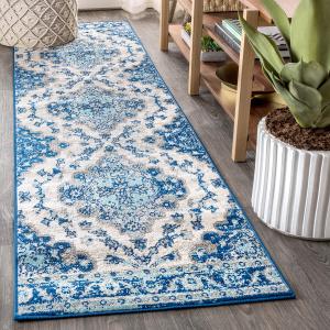 【並行輸入品】JONATHAN Y Boho ビンテージ クリーム/ブルー ランナー ラグ、2x10、ボヘミアンフレアメダリオン、フローラル 簡