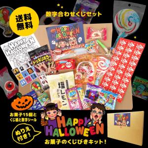 送料無料「ハロウィンお菓子 詰め合わせ お菓子くじ作りキット」15個のお菓子 タトゥシール ぬりえ付き! HALLOWEEN 駄菓子詰め合わせ