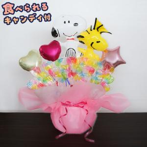 スヌーピー ピンク キャンディブーケ バルーン電報 結婚式 誕生日 発表会 出産祝い プレゼント ウェディング バースデー 祝電 バルーンギフト