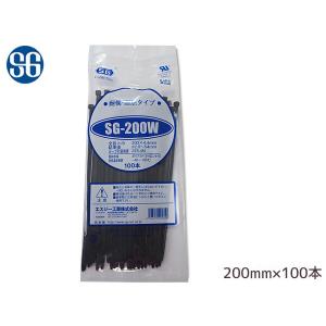 結束バンド ケーブルタイ タイラップ 黒 200mm 100本 SG-200W 耐候 耐熱 エスジー工業 メール便 送料無料