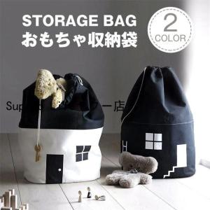 ストレージ バッグ 収納袋 おしゃれ 北欧 子供部屋 折りたたみ ブラック お片付けバッグ インテリア 巾着 ベビー 子供 お祝い モノトーン